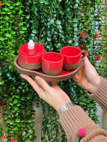 ست قهوه خوری دو نفره قرمز