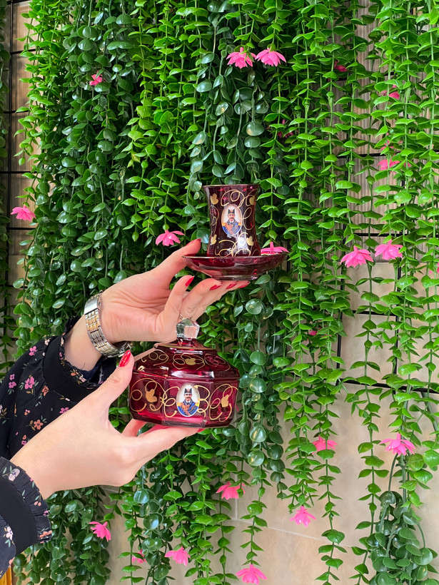 استکان نعلبکی کم باریک شاه عباسی قرمز