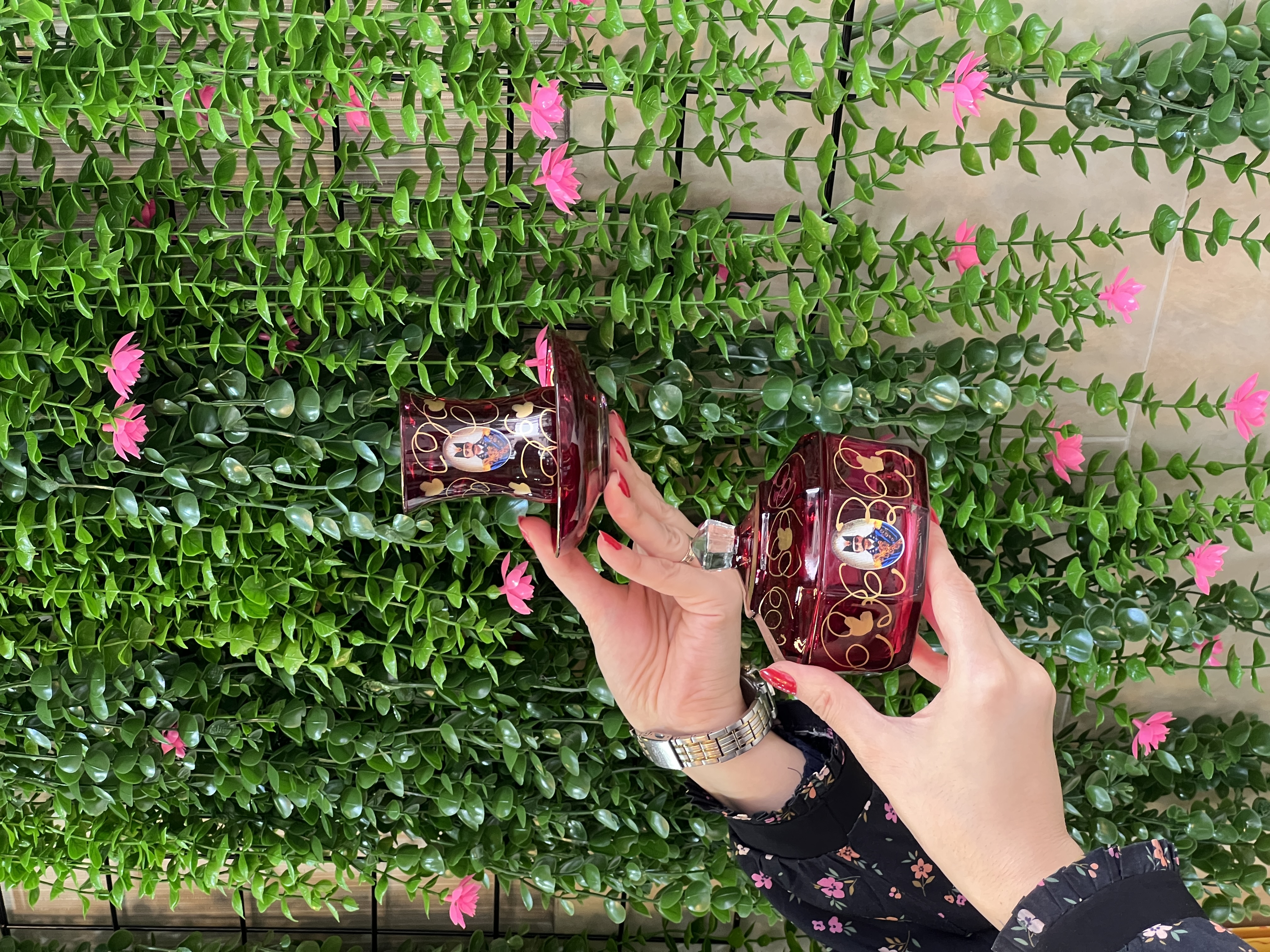 استکان نعلبکی کم باریک شاه عباسی قرمز