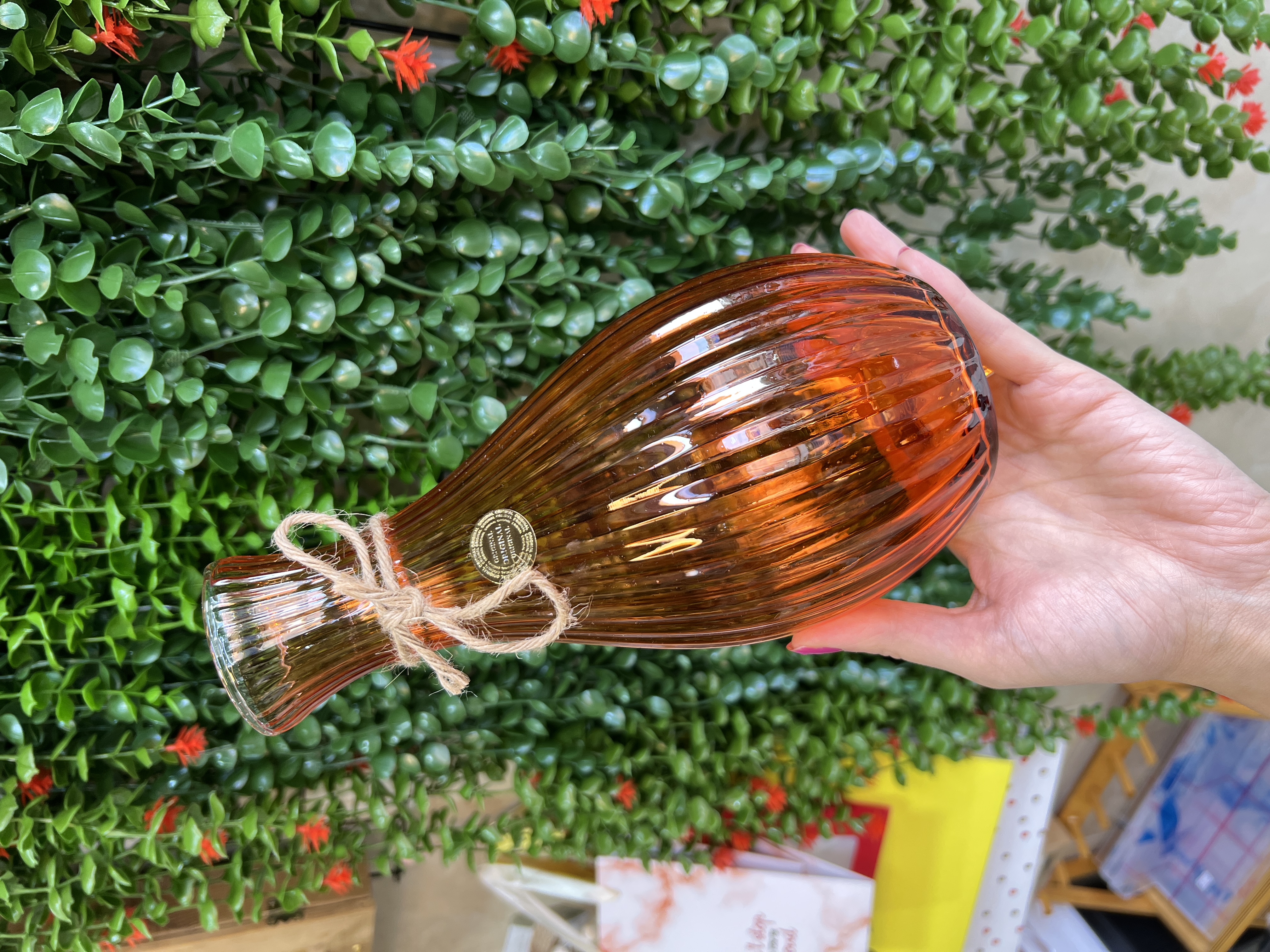 گلدان شیشه ای رنگ نارنجی