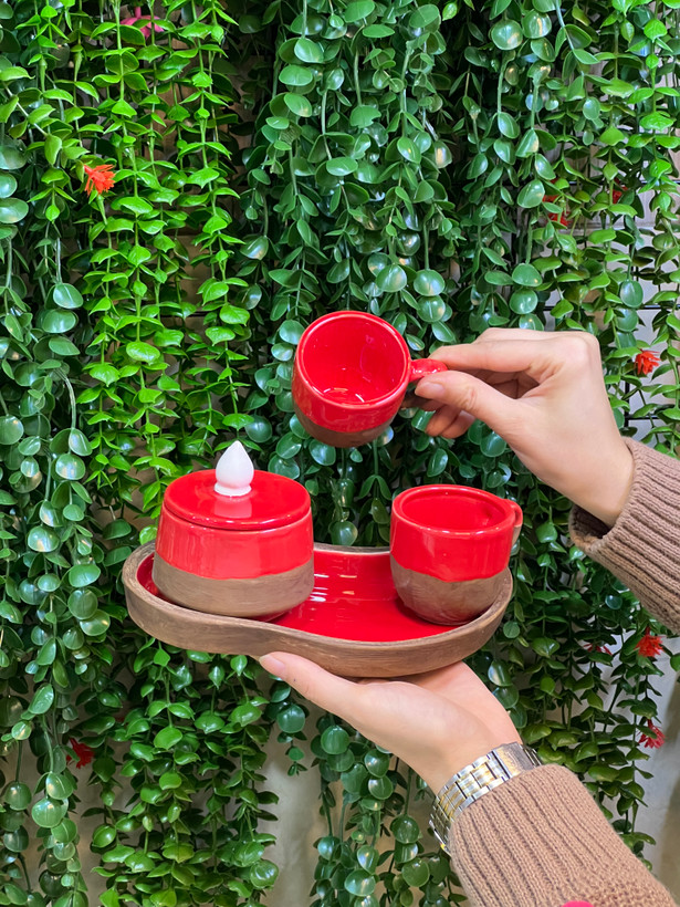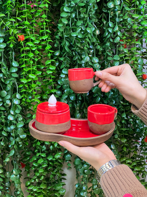 ست قهوه خوری دو نفره قرمز