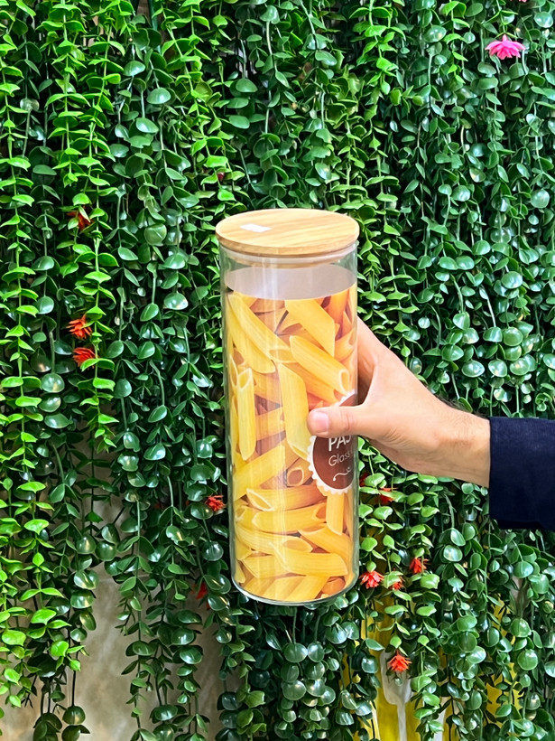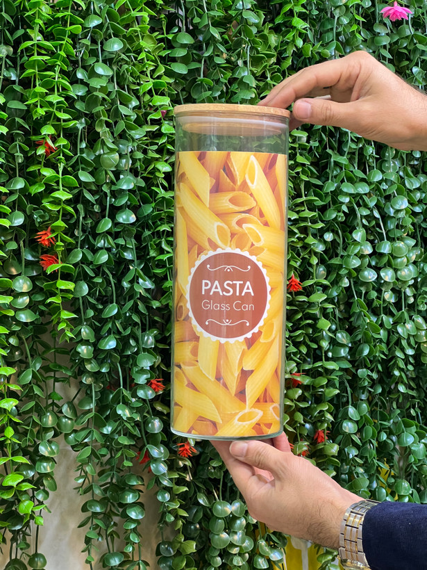 بانکه ماکارونی شیشه ای درب بامبو