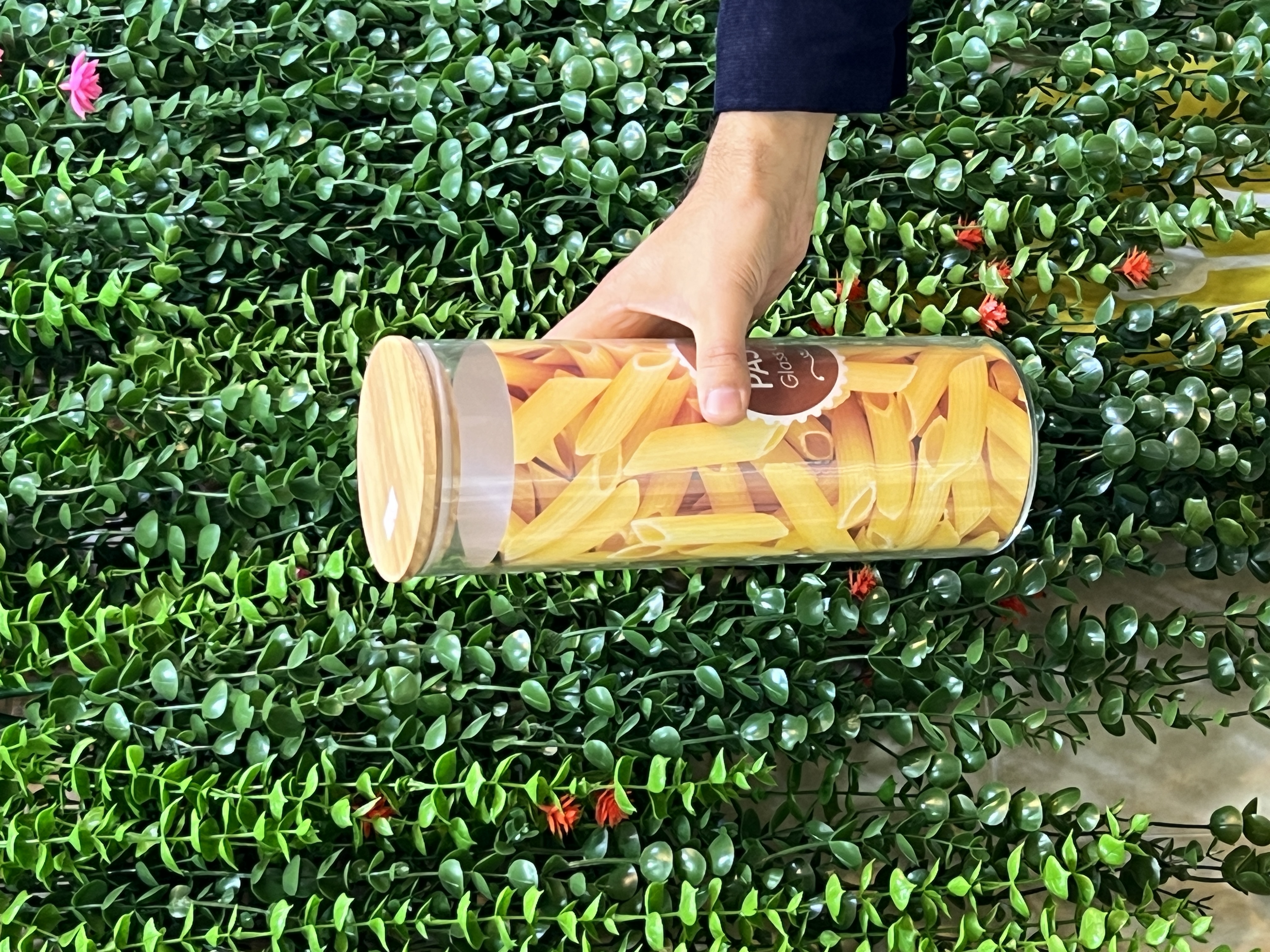 بانکه ماکارونی شیشه ای درب بامبو